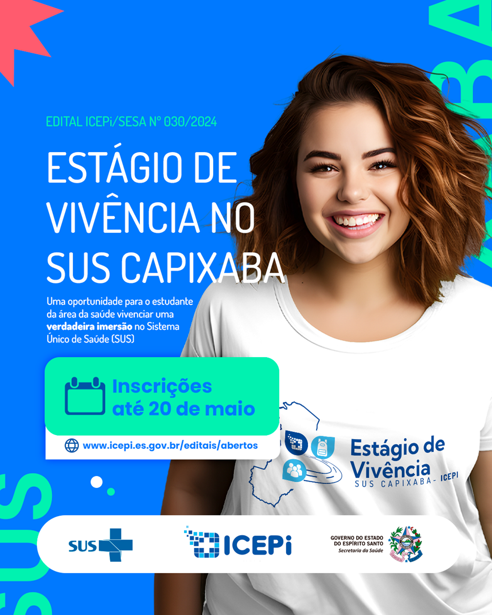 A Secretaria da Saúde (Sesa), por meio do Instituto Capixaba de Ensino, Pesquisa e Inovação em Saúde (ICEPi), iniciou o período de adesão dos municípios do Espírito Santo à etapa piloto do Programa de Estágio de Vivência no Sistema Único de Saúde (SUS). O estágio, voltado para estudantes de graduação da área da saúde, está previsto para ocorrer em julho deste ano, por período de sete dias.